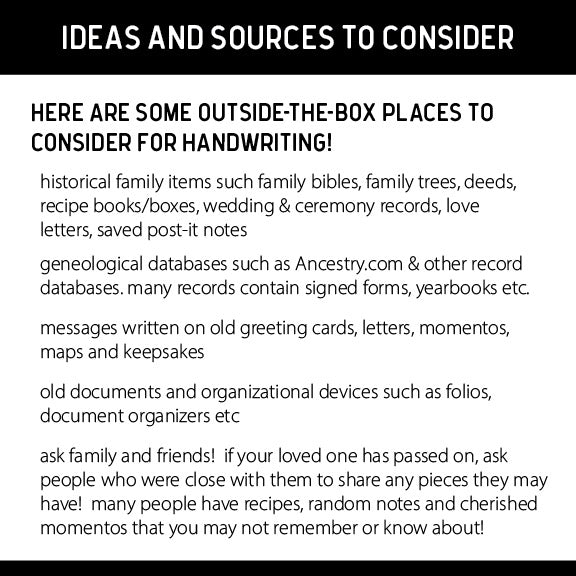 - Handwriting/Recipe Card Recreation: You provide a picture of a treasured recipe card, love note, greeting card signature, etc and we’ll trace it and engrave it on your selected serving board. You can write your own note to be given to loved ones too! Please provide a picture of your recipe card from “straight on” - this helps us capture the handwriting in all the proper angles as to not distort your loved one’s writing.
