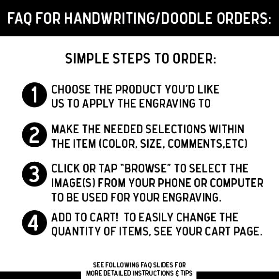 - Handwriting/Recipe Card Recreation: You provide a picture of a treasured recipe card, love note, greeting card signature, etc and we’ll trace it and engrave it on your selected serving board. You can write your own note to be given to loved ones too! Please provide a picture of your recipe card from “straight on” - this helps us capture the handwriting in all the proper angles as to not distort your loved one’s writing.