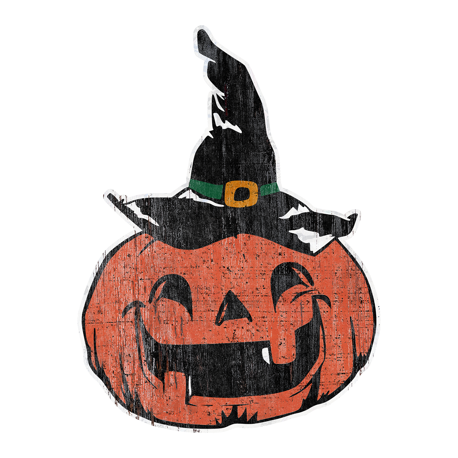 This iconic and timeworn jackolantern dons his favorite witch's hat as he sports his biggest, toothiest smile!